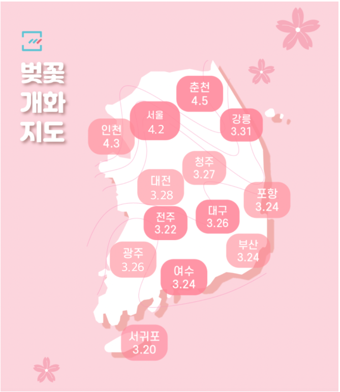 아래에서 전국 벚꽃 개화 시기와 지역별 축제 일정을 정리해 본다.